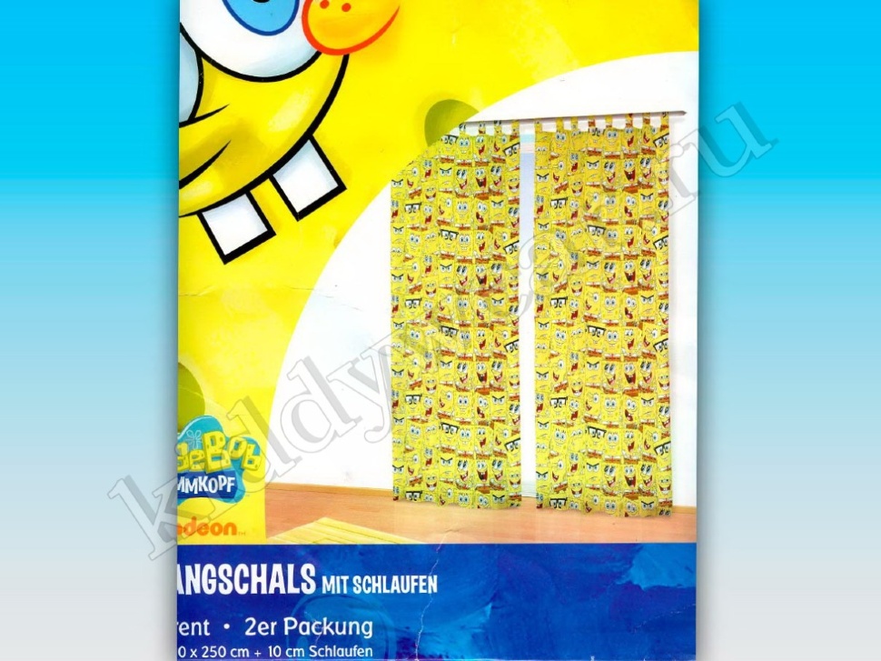 Шторы для детской "Spongebob" (2шт.), способ крепления (на петлях), тонкие, прозрачные, 100% полиэстер, размер 140 х 250 см + 10 см петли.