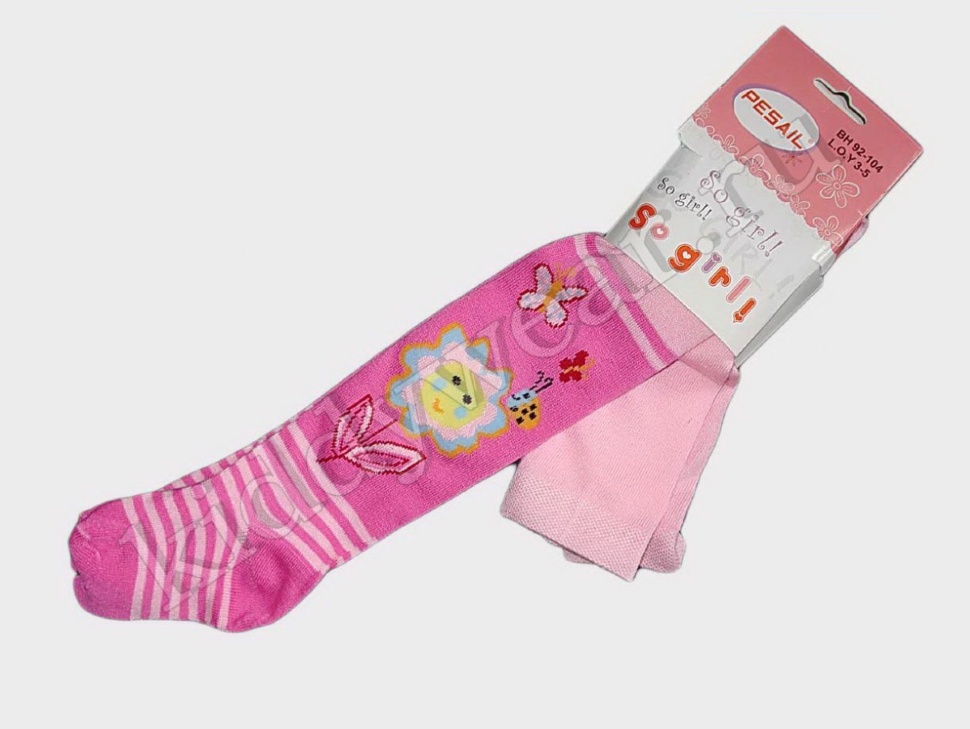 Колготки розовые с рисунком "Поляна", немного толще обычных, Cotton 80% + 15% полиамид + 5% эластан, размер 3/5 лет, рост 92/104 см. Маломерят.
