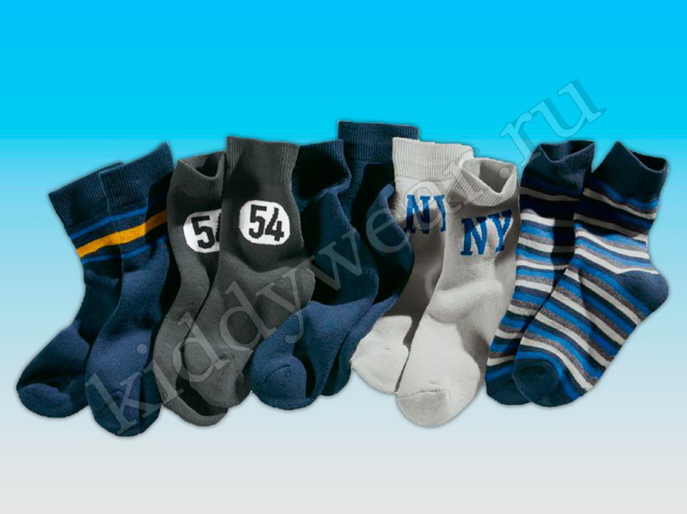 Носки для мальчика махровые цветные (5 пар), темно-серые "54" + темно-синие + светло-серые "NY" + серо-синие в полоску + темно-синие с цветными полосами, Cotton 87% + 12% полиамид + 1% эластан (Lycra):