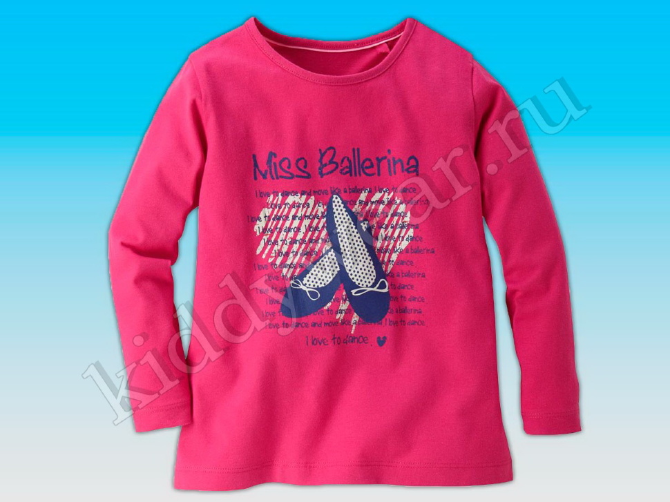 Лонгослив для девочки розовый "Miss Ballerina", перед декорирован принтом, трикотаж, 100% Cotton: