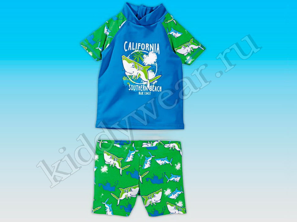 Купальный костюм для мальчика Lupilu зелено-голубой с УФ защитой 50+ (футболка + шорты). Этот купальный костюм для малышей с УФ - защитой изготовлен из эластичной мягкой ткани, в которой очень удобно двигаться и играть. Высокий уровень защиты от ультрафиолетового излучения 50+. Молния на спине не позволит ребенку расстегнуть ее без вашей помощи. Перед футболки декорирован принтом. Полиамид 80% + 20% эластан: